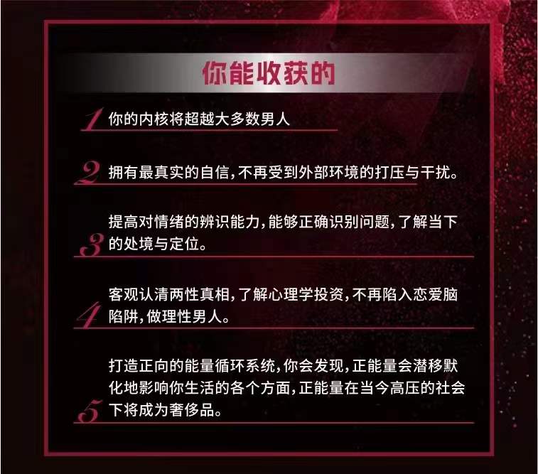 国内少有的实战派,用实力说话。 无论你学习过任何课程,“泰德调情术”都将颠覆你的过去。也许有人喜欢负向地评价你,消耗你,但没关系,这很好,你应该一直保持下去。